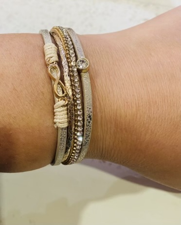 Beige/Gold Diamante Detail Strand Magnetic Fastening Bracelet