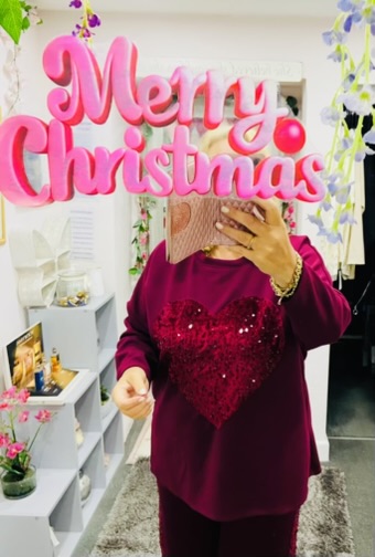 Black, Beige, Or Wine Large Sequin Heart Oversized Top