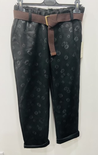 Black, Chocolate Brown, Tan, Or Beige Daisy Print Suedette Belted Trousers