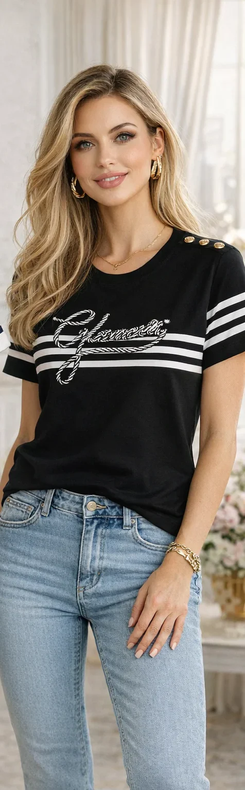 Black “Glamorous” Rope Stripe Cotton T-Shirt