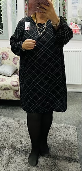 Black, Khaki, Dark Grey, And Light Grey Check Tunic Dress