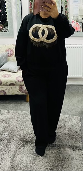 Black, Khaki, Or Navy Designer Inspired Diamante Sparkle Co-Ord Set