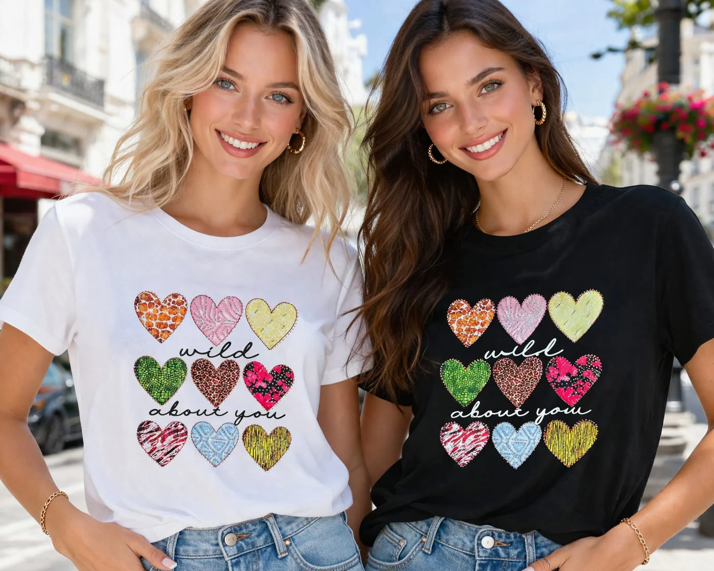 Black Wild About You Diamante Heart Detail Cotton Mix T-Shirt
