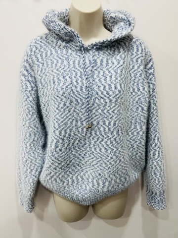 Blue/White Fluffy Hooded Top