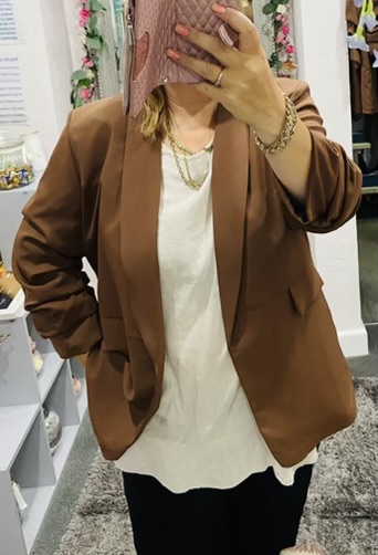 Brown Lightweight Ruched Sleeve Blazer Open Jacket