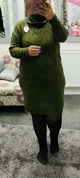 Cream, Beige, Navy, And Khaki Soft Knit Knitted Pattern Jumper Tunic Dress