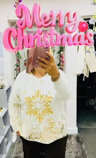 Cream Gold Foil Snowflakes Print Soft Knit Jumper