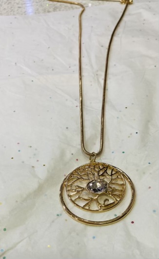 Gold Or Silver Filigree Circle Pendant With Diamante Centre Long Necklace