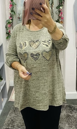 Beige Diamante Animal Foil Heart Print Top
