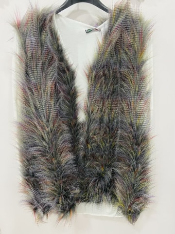 Wine/Brown/Cream Or Black/Grey/Cream Long Striped Shaggy Gilet