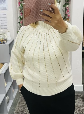 Ivory Gold Sequin Striped Soft Knit Jumper