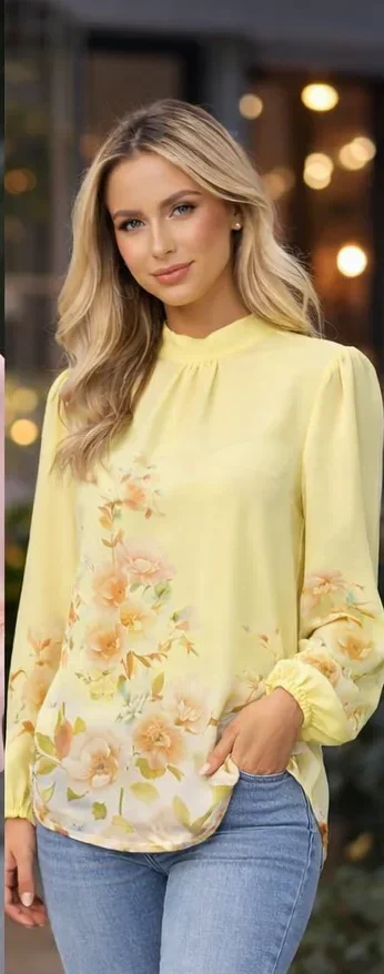 Lemon Blossom Print High Neck Blouse