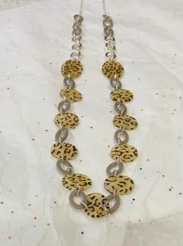 Leopard Print Loop Chain Long Silver Necklace
