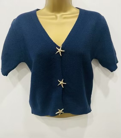 Navy Cropped Short Sleeve Gold Star Detail Jumper
