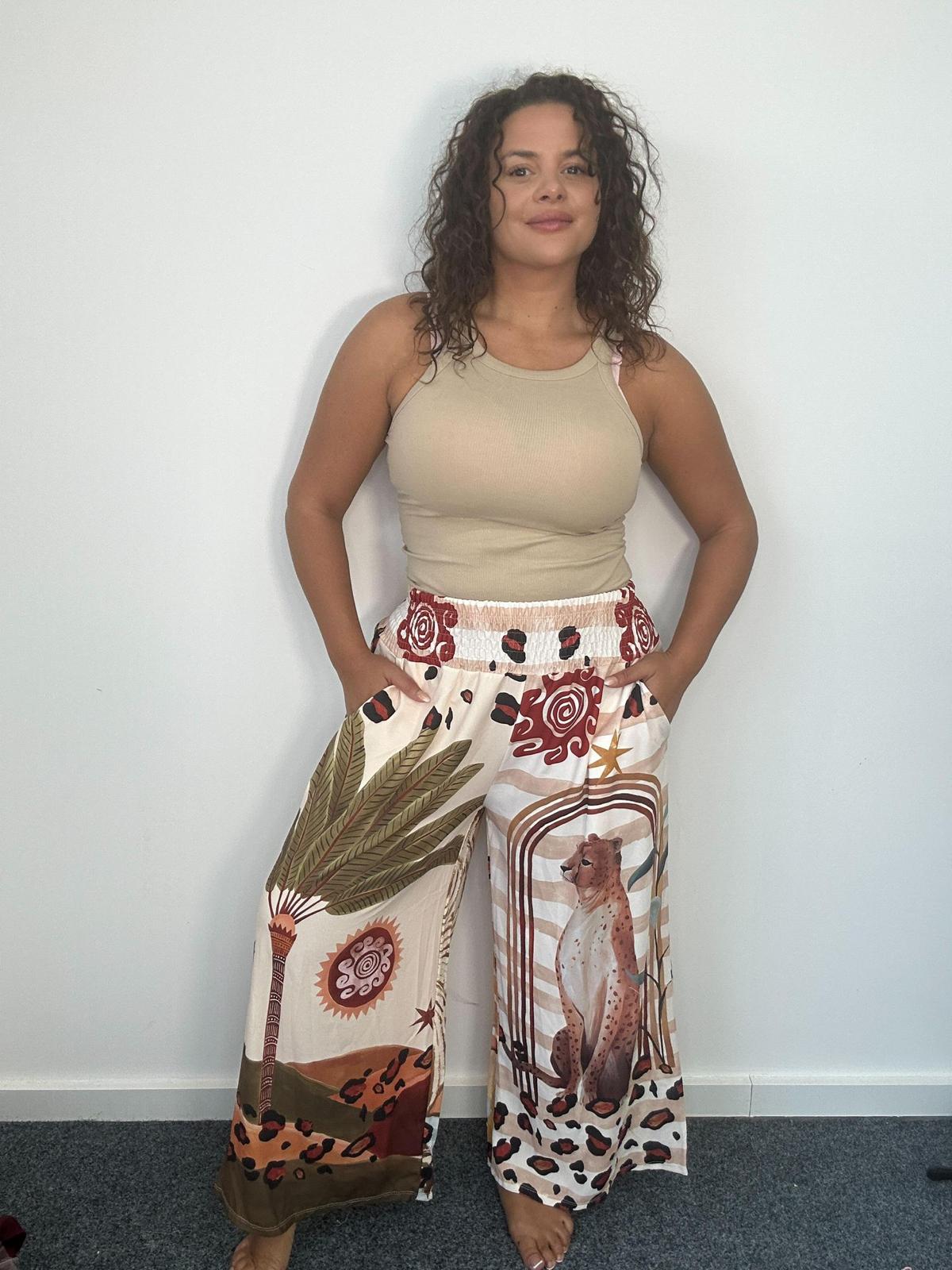 The elasticated waistband ensures a flexible fit, while the wide-leg silhouette gives a breezy and relaxed look. Perfect for casual days, holidays, or standout everyday wear.