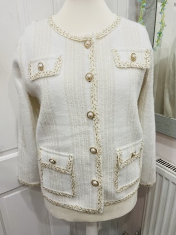 Winter White Or Black Gold Edging Pearl Detail Cardigan/Jacket